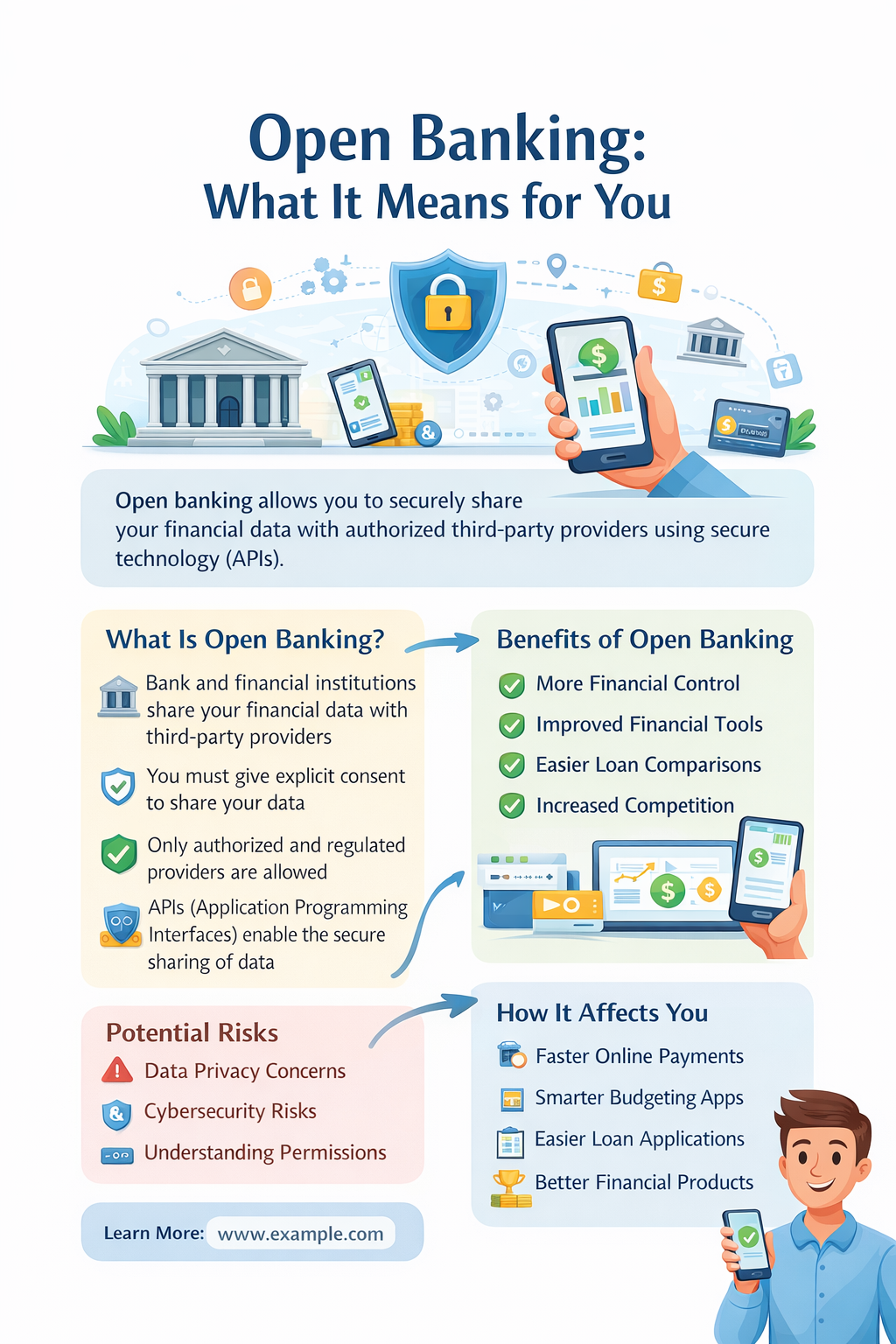Open banking allows consumers to securely share their financial data with approved third-party providers.