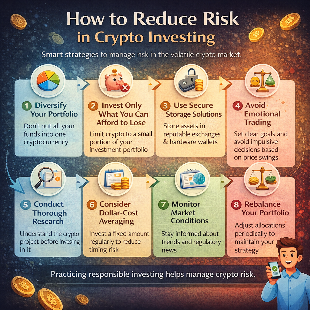 Cryptocurrency markets are highly volatile, but smart strategies can help manage exposure. Learn how to reduce risk in crypto investing through diversification, security practices, and disciplined portfolio management.